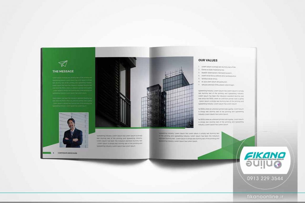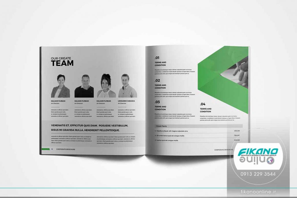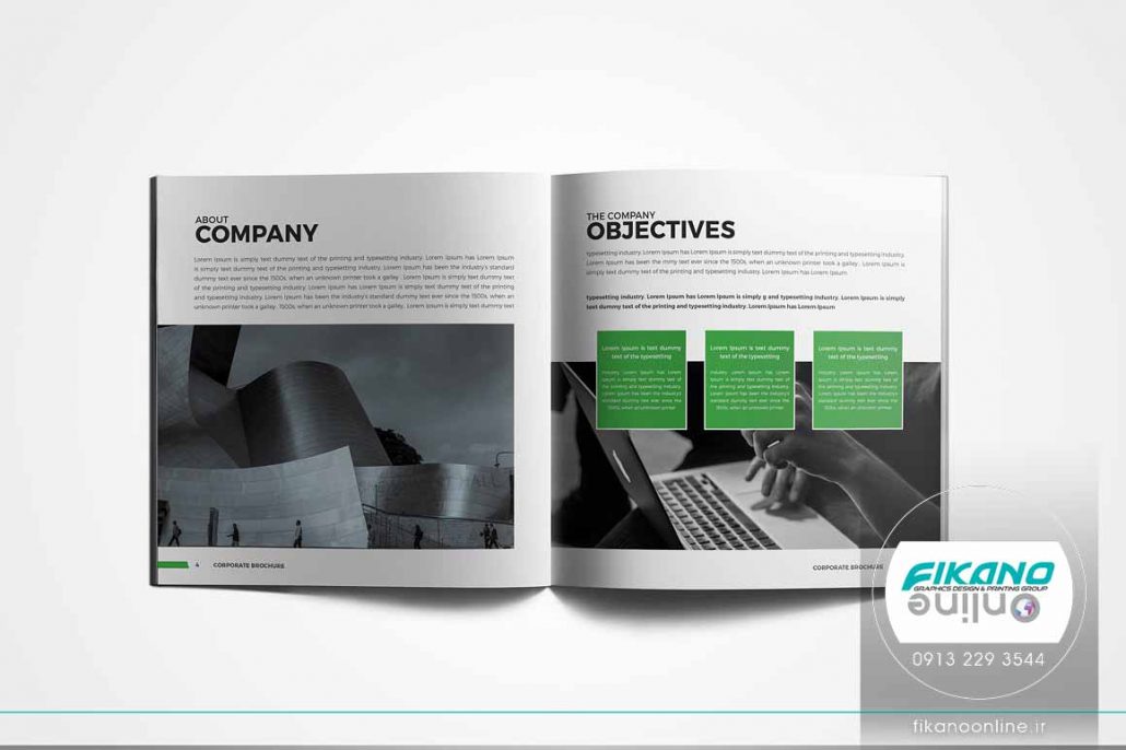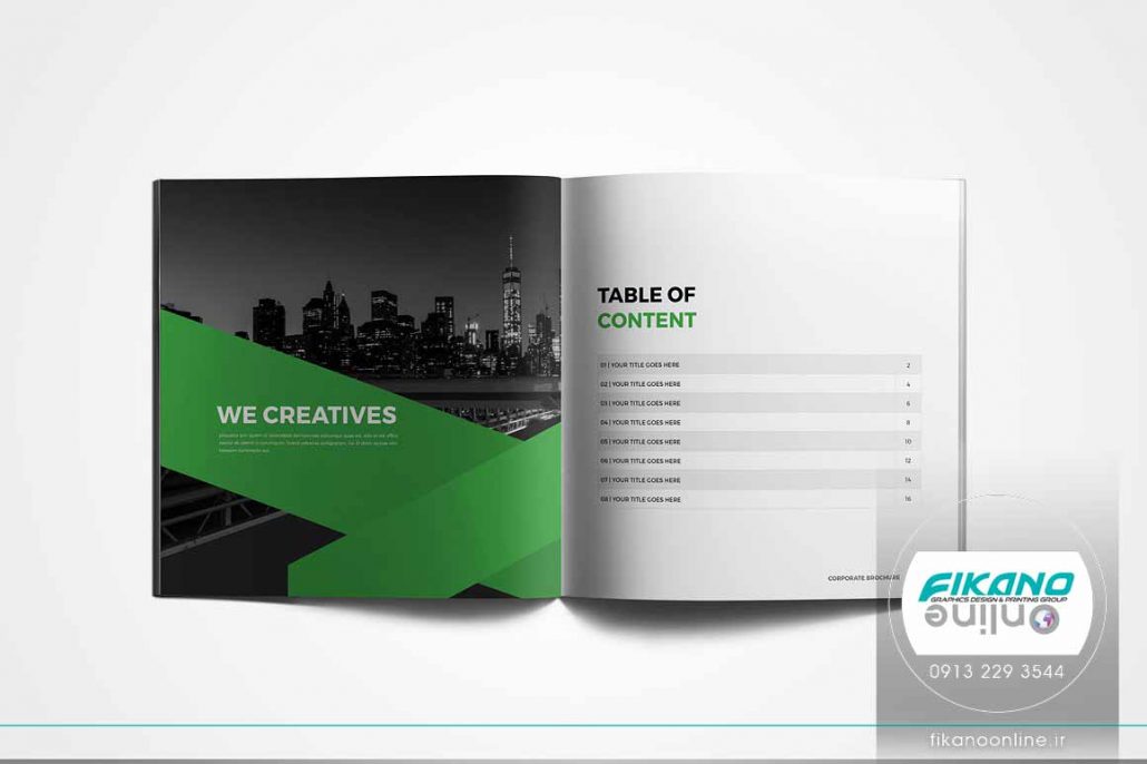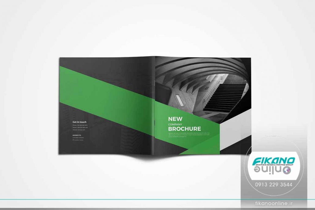 طراحی پیش رو نمونه ای از طراحی کاتالوگ با تم رنگ تیره می باشد. کاتالوگ در سبکی مدرن طراحی شده و در طراحی از سطح های بزرگ رنگ های تره ای مثل شبز سیر و مشکی استفاده شده است. از آنجایی که زمینه کاتالوگ خاکستری رنگ است فضای طراحی را تیرتر دیده میشود و این موضوع هماهنگی خاصی با رنگ های استفاده شده در طراحی دارد.