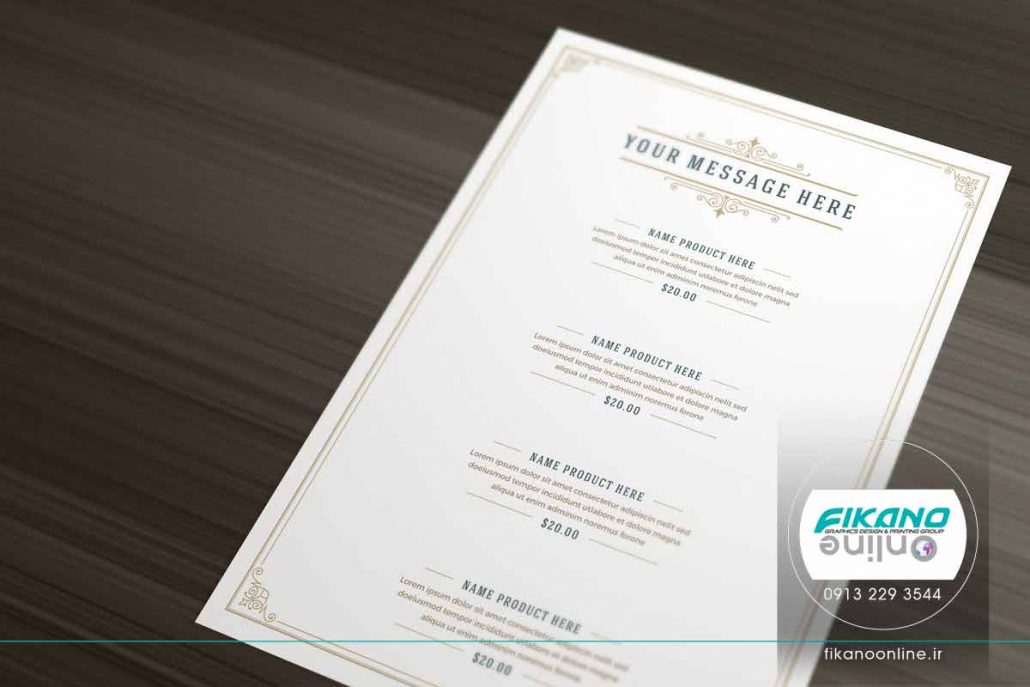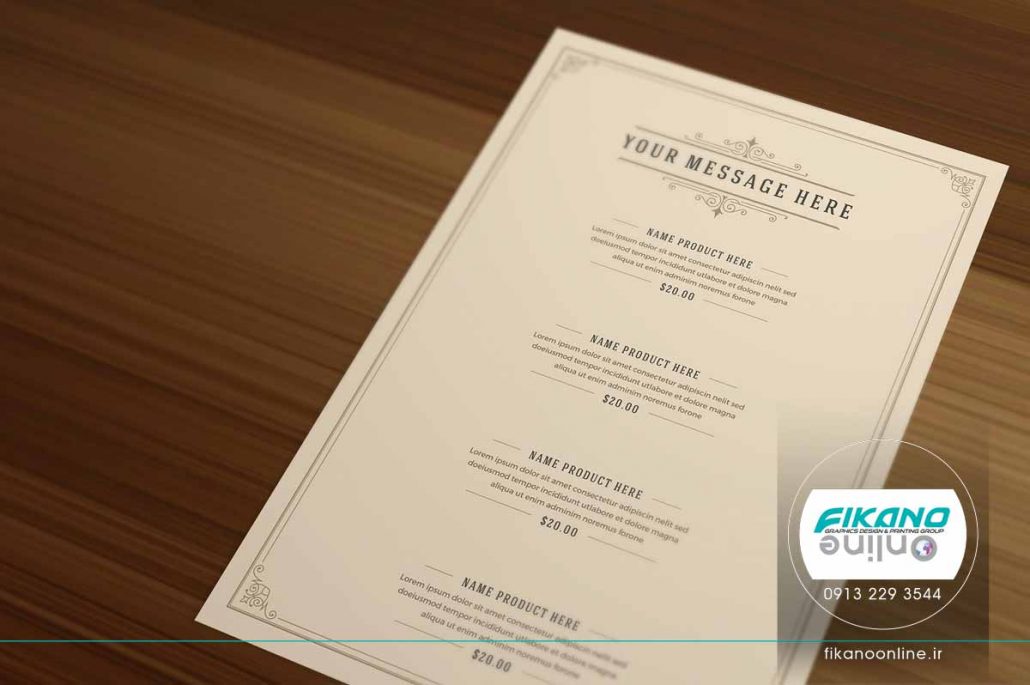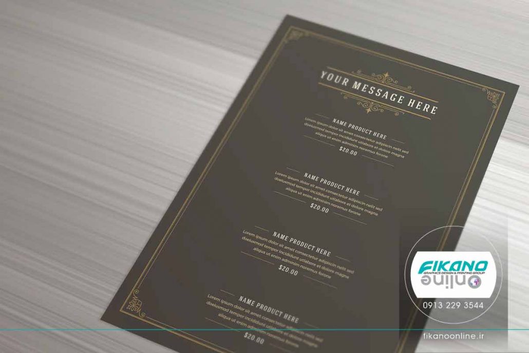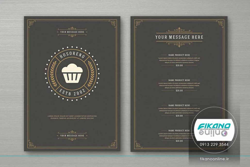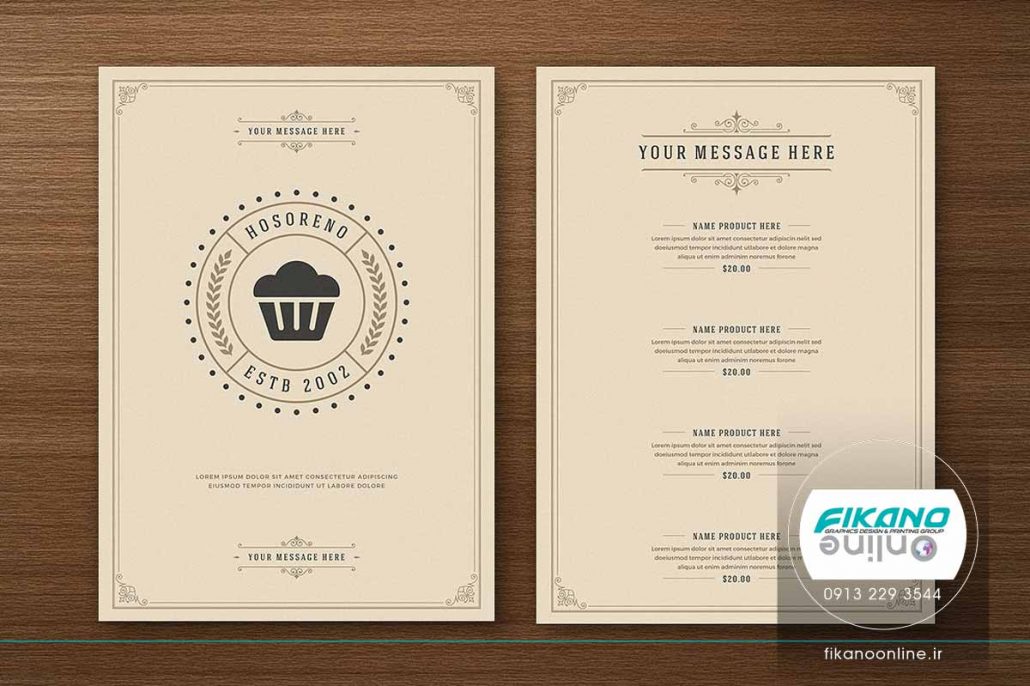 طراحی منو زیبا و کلاسیک برای کاربری هایی مانند رستوران، کافی شاپ، قهوه فروشی، نان و شیرینی و غذاخوری های سنتی.