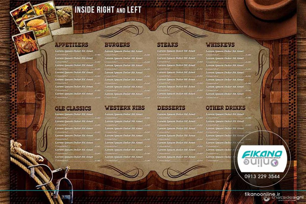 منو طرح چرم وسترن (گاوچرونی) برای کافی شاپ و قهوه فروشی و فست فود