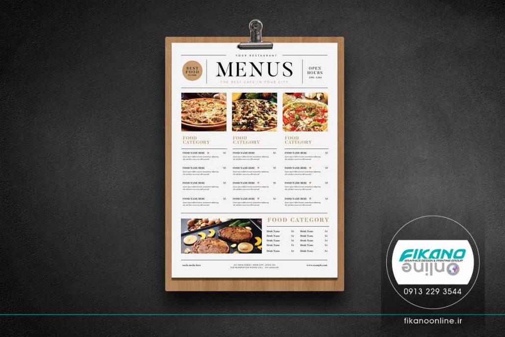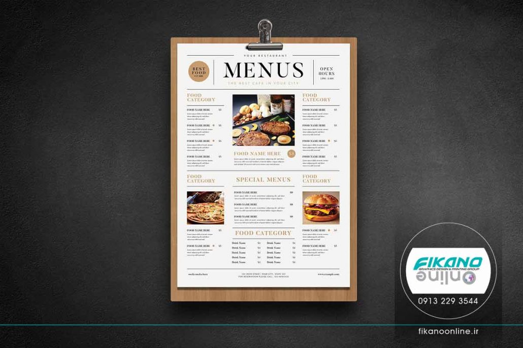 منو محلی کافی برای نام غذا، قیمت و توضیحات دارد، علاوه بر این فضای کافی برای قرار دادن تصویر برای هر دسته بندی غذایی در منو در نظر گرفته شده است.
