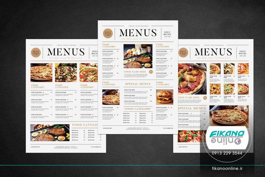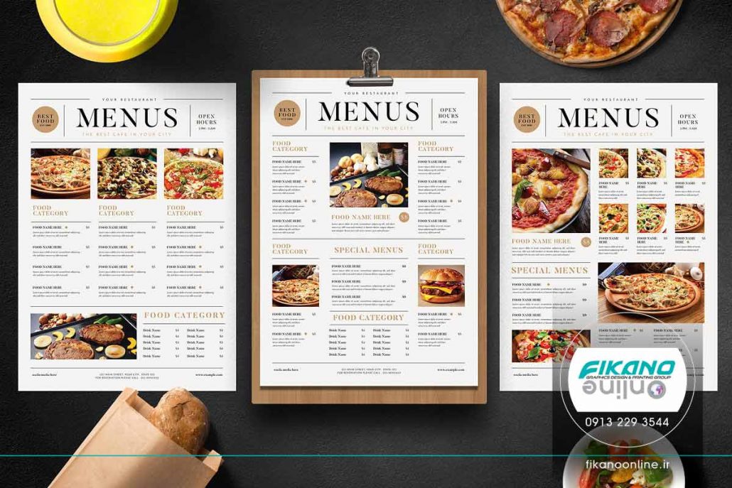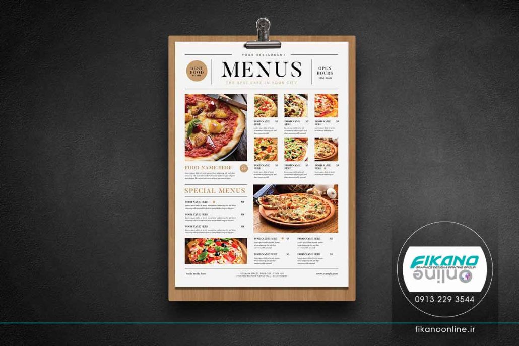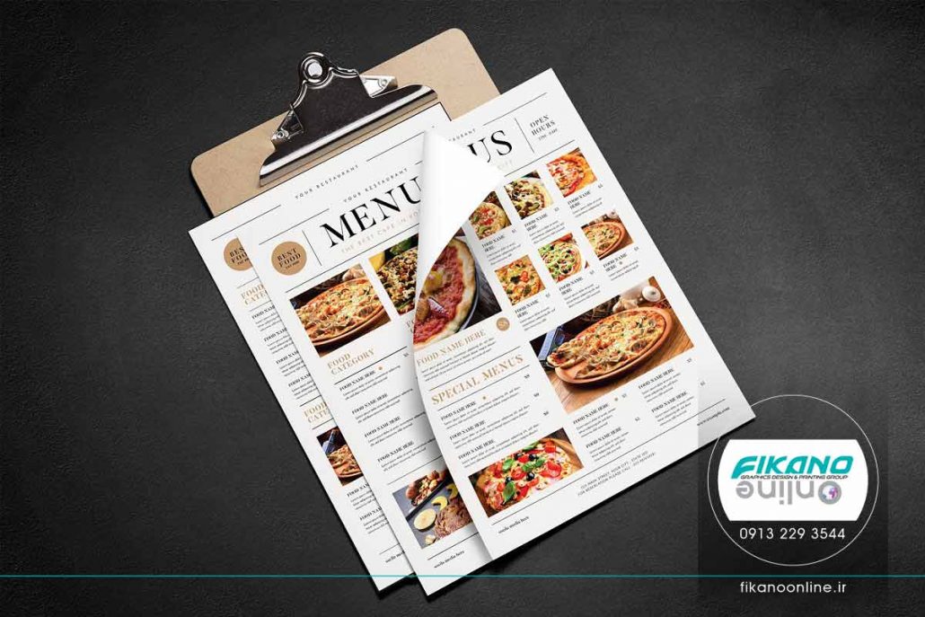 طراحی منو زیبا تک برگ با فرم مجله ای