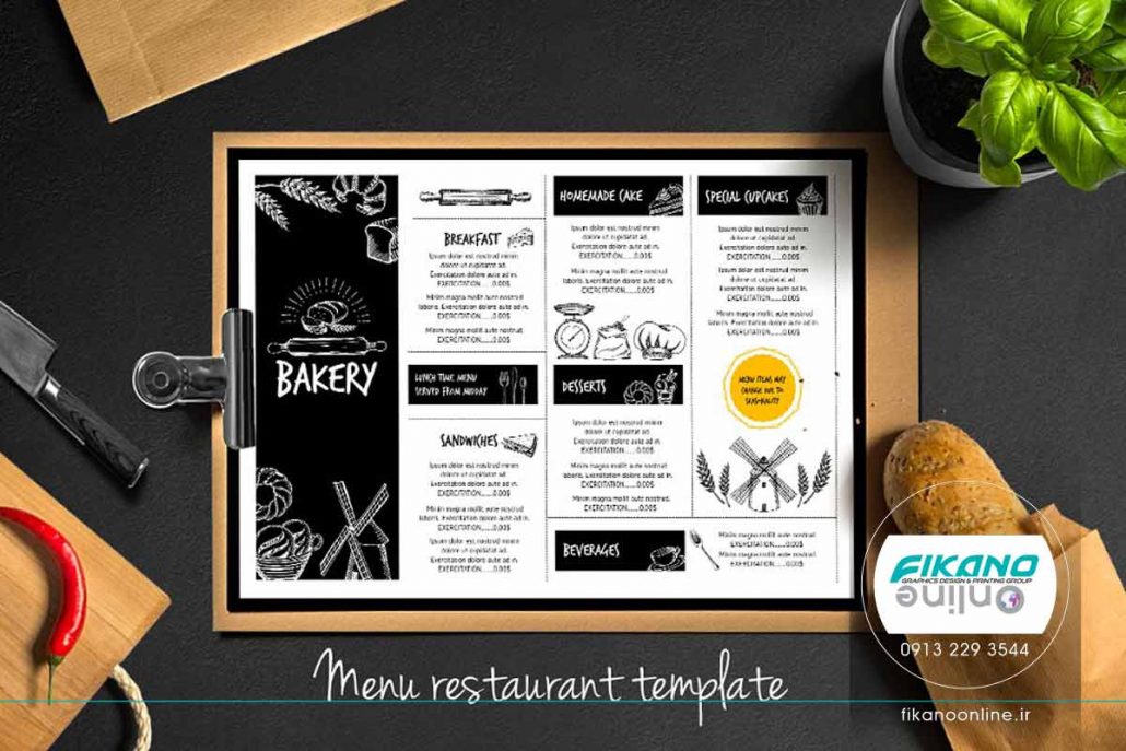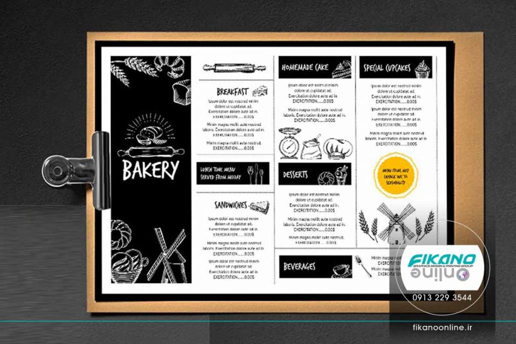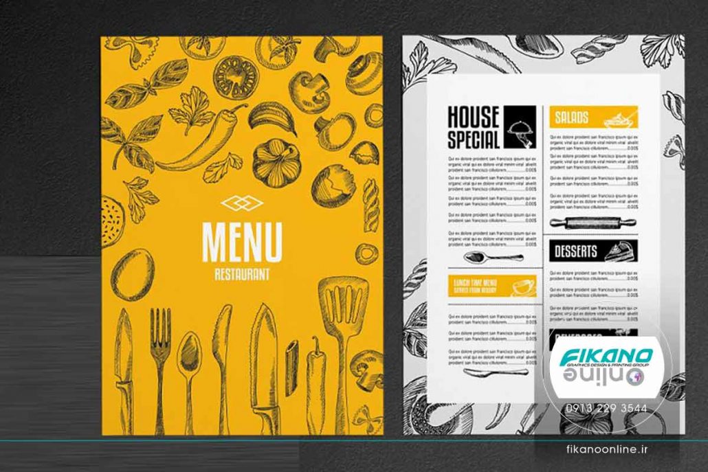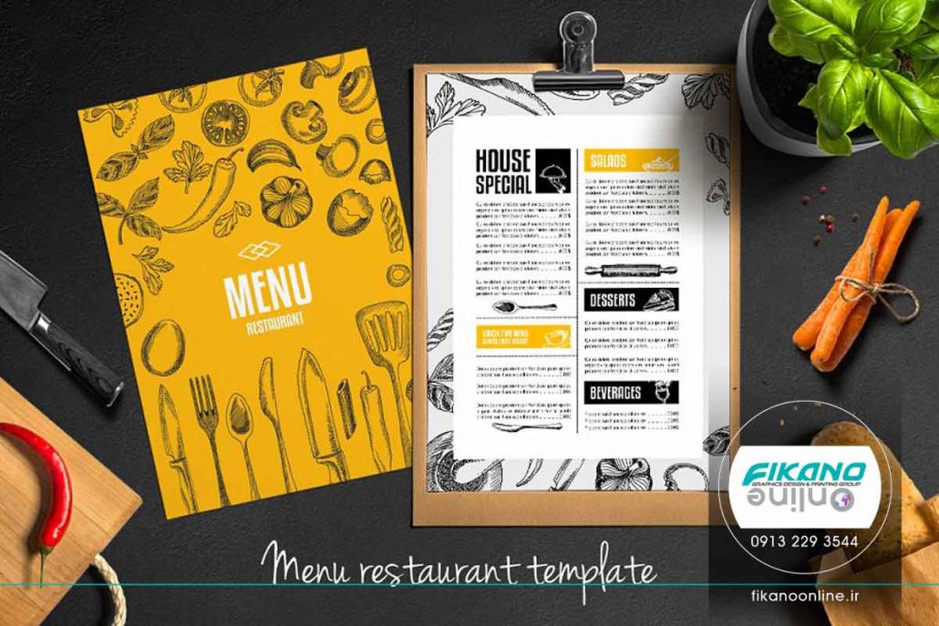 من در دو استایل افقی و عمودی طراحی شده است. همچنین فضای کافی برای نوشتن جزئیات غذا در منو موجود می باشد.
